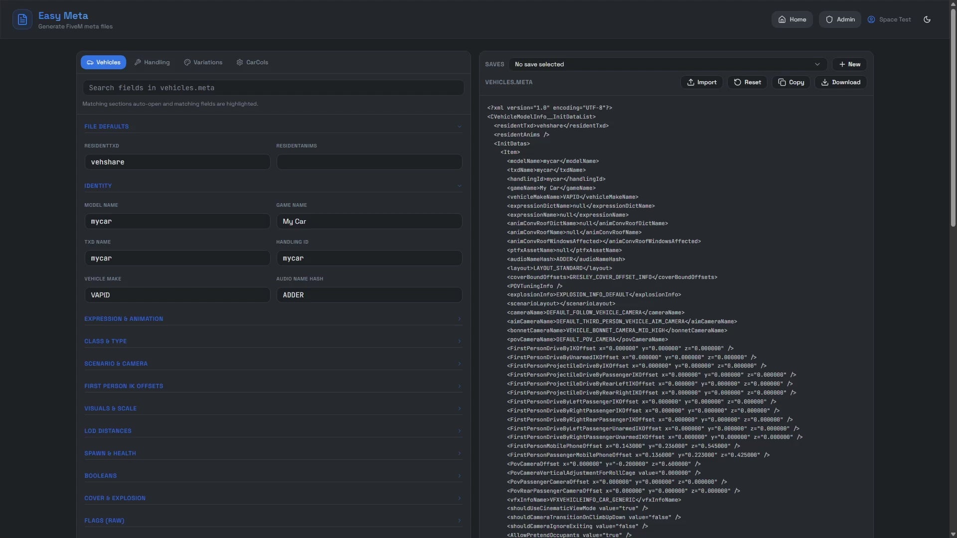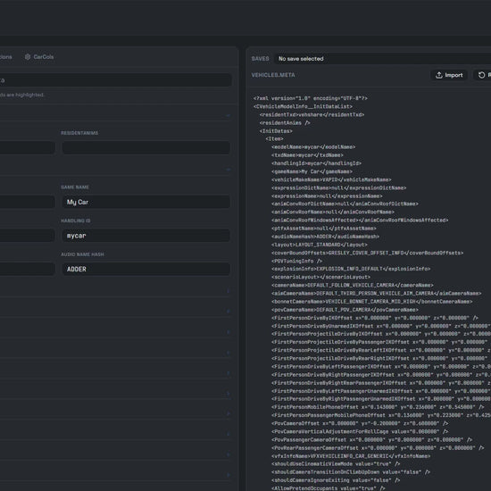 Easy Meta, is a all in one Vehicle meta file generator one click easy meta editing. From handling lines to easy modkits and sirens. Easy meta makes creating metas simpler and faster for developers.